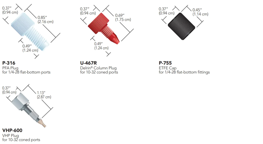 IDEX Plugs & Caps bieden een eenvoudige en betrouwbare oplossing voor het tijdelijk of permanent afsluiten van poorten, fittingen en tubing. Of u nu een kolom wilt opslaan zonder dat deze uitdroogt, of een ongebruikte poort in een verdeelstuk wilt dichten: de juiste plug of cap voorkomt contaminatie, verdamping van solventen en ongewenste lekkages.