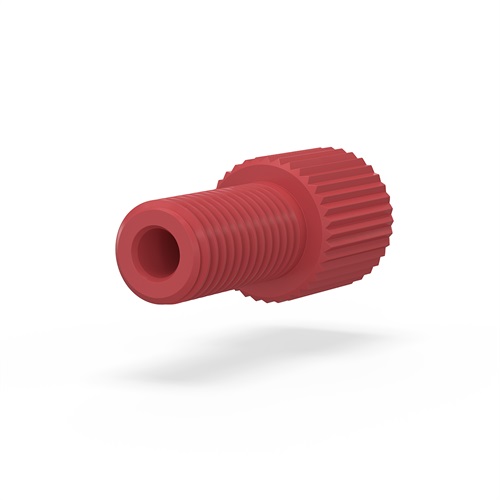 P-220R – Flangeless Male Nut Polypropylene, 1/4-28 Flat-Bottom, for 1/16″ OD RedBekijk product