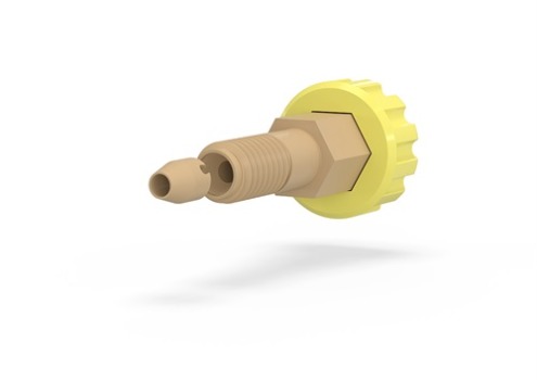 Our Two-Piece PEEK Fitting and Ferrule is biocompatible and offers excellent chemical resistance and is simple, economic, and easy-to-use. It is for 1/8″ OD Tubing and has a 5/16-24 coned port configuration. This 2 piece Fingertight fitting has a tubing OD of 1/16″. This comes in a 10 pack with black, blue, green, gray, red, white yellow, or multi-colored fitting knobs. Brochure