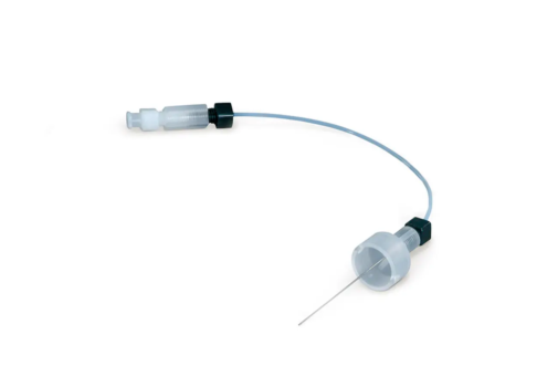 This suction needle adapter allows for suction-loading of a valve if you do not want your sample to contact the syringe.