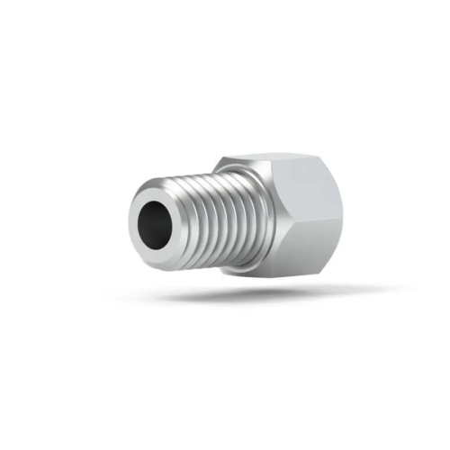 Our Stainless Steel Male Nut delivers strength and reliability. It can withstand pressures of up to 20,000psi when wrench tightened. Our nut has a 1/4-28 coned thread port configuration and is for 1/8″ OD tubing.