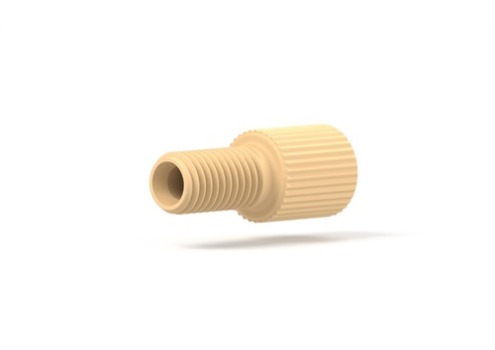 Our Flangeless Male Nut is easy to use, eliminates the need to flange tubing and are reusable. It is made of It is made with versatile Delrin(acetal resin) which allows the nut to resist cross threading or loosening during use. It comes with a 1/4-24 Flat-Bottom port configuration and is for 1/8″ OD tubing. It comes in Cream. Brochure