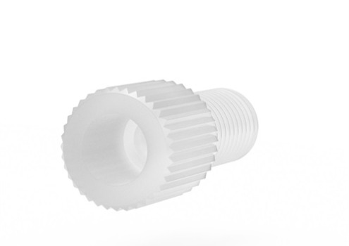 Our Flangeless Nut is easy to use, eliminates the need to flange tubing and are reusable. It is made of It is made with Dupont PFA making it inert to virtually all chemicals used in an HPLC system. It comes with a 1/4-24 Flat-Bottom port configuration and is for 1/8″ OD tubing. It comes in natural color as a single or in a 10 Pack. Brochure