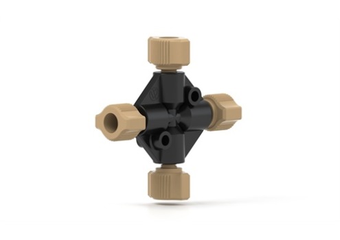 PEEK High Pressure Cross Assembly is precisely designed to withstand environmental stresses in the high pressure regions of a system. It is made from inert PEEK, which is ideal for chemical resistance. P-729 includes (4) F-300 Fingertight Fittings allowing maximum operating pressure to 3500 psi (241 bar) when used with 1/16″OD stainless steel or PEEK tubing. Brochure