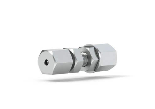 Our Stainless Steel Bulkhead Union Assembly are precision machined from 316 stainless steel. Our mechanically strong and reliable union offers true zero dead volume (ZDV) allowing tubing to be joined without interrupting the fluidic path. The bulkhead union is manufactured for easily plumbing tubing through equipment housing. It is designed for 1/16″OD tubing, thru-hole of .050 and has a 10-32 Coned thread port configuration.