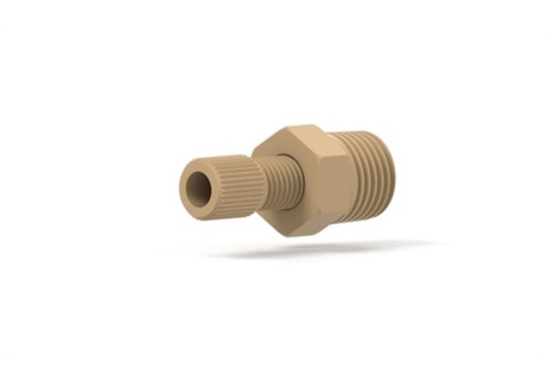 Our NPT (National Pipe Thread) Adapter Assembly is specifically manufactured from PEEK making it durable and chemically resistant. It is optimally suited for low pressure applications. It has a tubing OD of 3/16″ and it’s thread configuration is 1/4″ NPT Male to 5/16-24 Flat-Bottom Female ports. It is natural color and comes with (1)OD x P-132 Fitting.