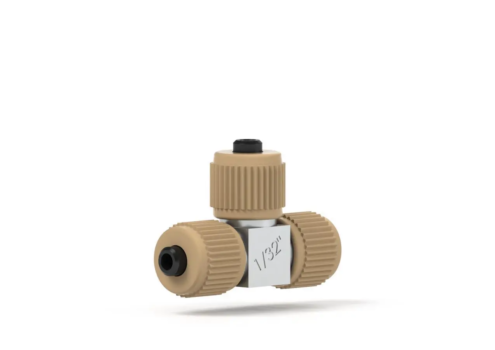 Our VHP MicroTee Assembly’s unique design creates a direct connection for tubing; no sleeves required. It is manufactured from durable stainless steel and features a small thru-hole and very low internal volume. Stainless steel delivers excellent chemical compatibility and conductivity making it an ideal choice when electrical applications are in use. It is for 1/32″OD tubing and has a thread of 5/16-24 Coned. It comes with (3) PK-112 and (3)P-416 Fittings. Brochure