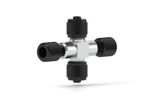 Our VHP MicroCross Assembly’s unique design creates a direct connection for tubing; no sleeves required. It is manufactured from durable stainless steel and features a small thru-hole and very low internal volume. Stainless steel delivers excellent chemical compatibility and conductivity making it an ideal choice when electrical applications are in use. It is for 360µm OD tubing and has a thread of 5/16-24 Coned. It comes with (4) PK-152 and (4)P-416BLK Fittings. Brochure