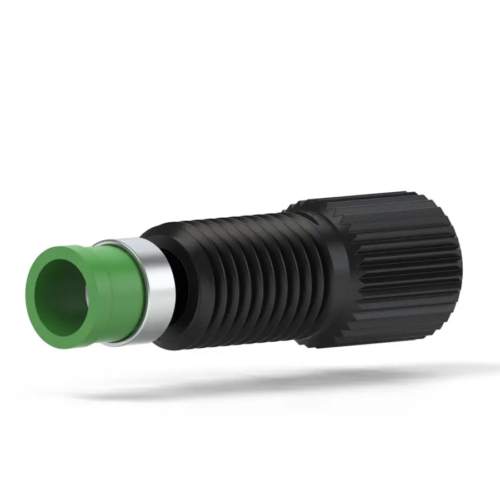 Our PEEK Super Flangeless Fitting is an ideal choice those connections that need to be broken frequently and tubing assemblies because they swage onto the tubing. Manufactured from biocompatible PEEK it delivers excellent chemical resistance. It comes with a Tefzel (ETFE) washer. Our fitting has a 5/16-24 Flat-Bottom thread port configuration and is for 3/16″OD Tubing and comes in black. Brochure